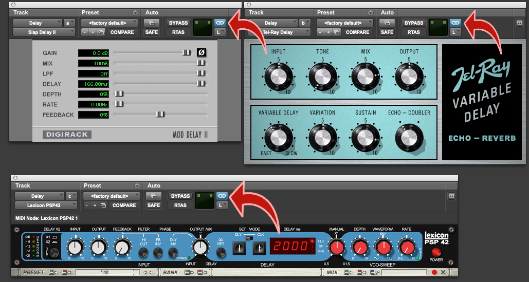 3. Change the delay settings on one side. For example, if you have your delay dialed into a quarter note delay at 110 bpm…simply dial one of the sides to 107 bpm. If one side is 200ms, make the other side 180ms. Instant width.