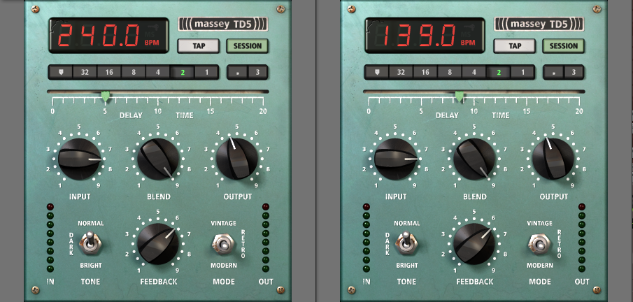 - The “without distortion” sample actually has a little fuzz already on it as I’m driving the wonderful Massey TD5 input quite hard. (My absolute favorite delay plugin; go buy it! Yes, this is an advertisement for them. No, I’m not getting paid to make it!).